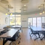 The Hub can host 25 participants seated at our rolling training tables, or 35 in seated rows for lectures or presentations. Cast visuals to our Google Canvas TV or host a hybrid discussion with our Owl 360-degree camera/speaker. The beautiful environment and view over the park will inspire your next meeting.