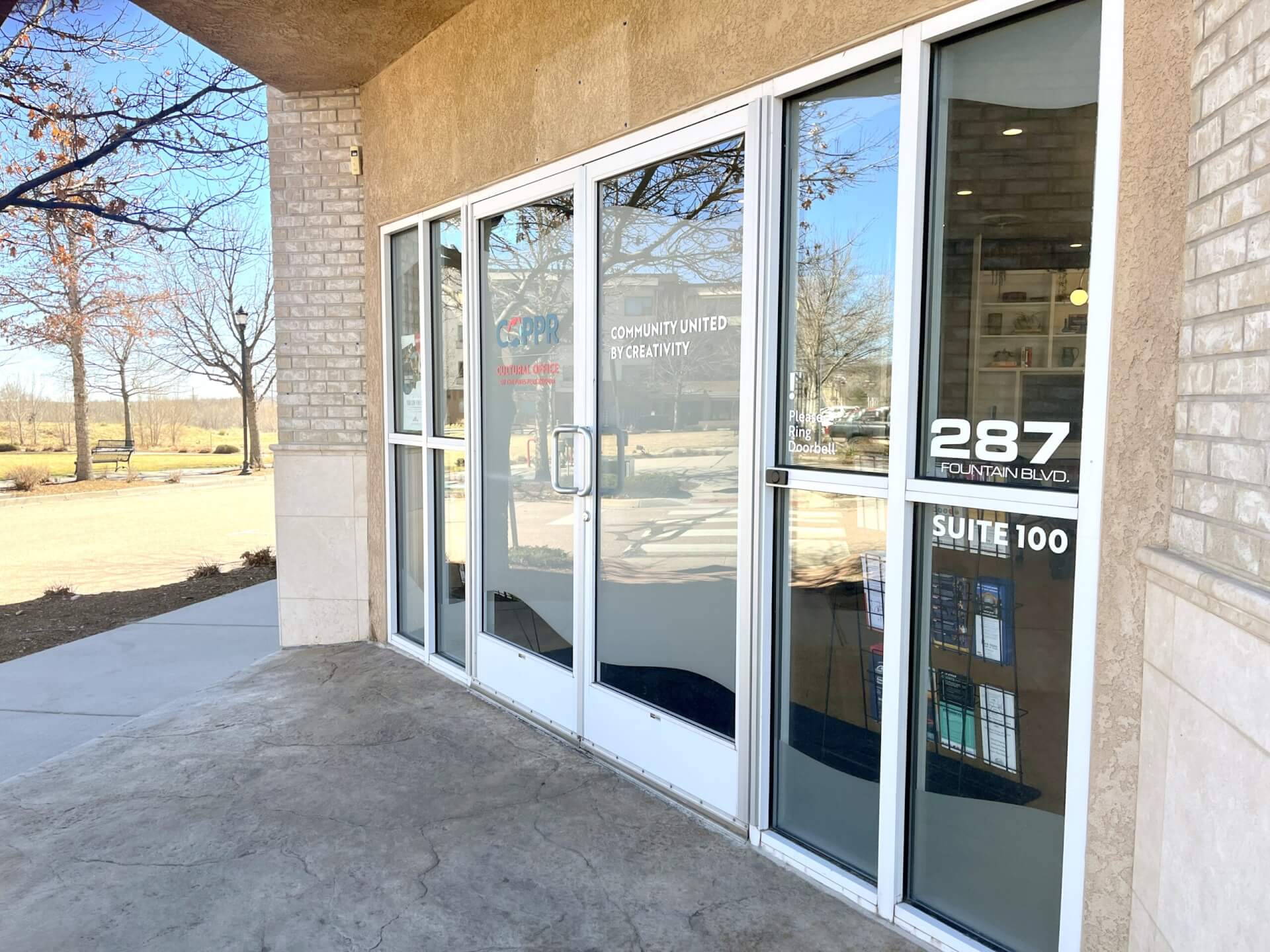 The Cultural Office is located in Downtown Colorado Springs at the south end of Weber St. The address is 287 Fountain Blvd., #100, Colorado Springs, CO 80903. Street parking is free and crosswalks are ramped.ย